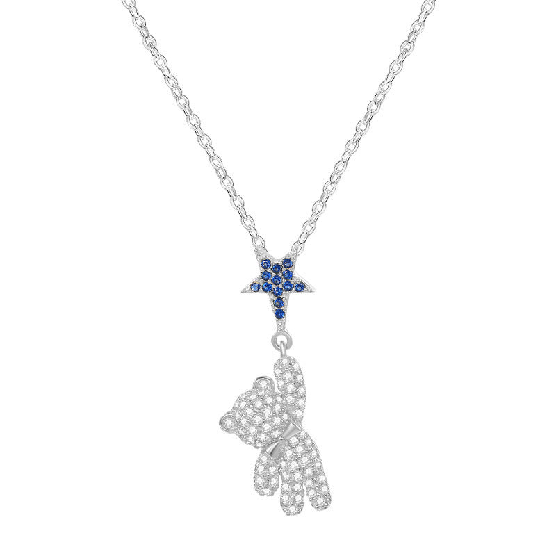 „Bearia“ – Halskette mit funkelndem Bärenanhänger und Stern aus 925er Sterlingsilber