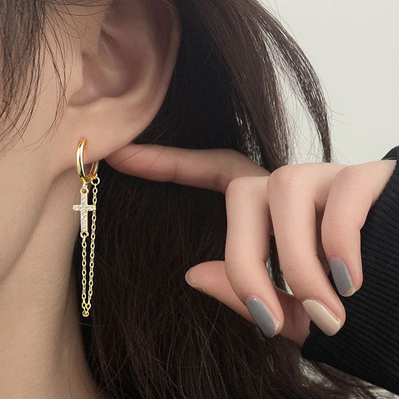 Diese stilvollen Hängeohrringe aus 925 Sterling Silber kombinieren funkelnde Zirkonia-Kreuze mit eleganten Kettentasseln. Sie verleihen jedem Outfit einen modernen, raffinierten Akzent und eignen sich sowohl für besondere Anlässe als auch für den Alltag. Leicht, langlebig und aus hochwertigem Silber gefertigt, sind sie ein perfektes Schmuckstück für Frauen, die Eleganz und Ausdruckskraft lieben.