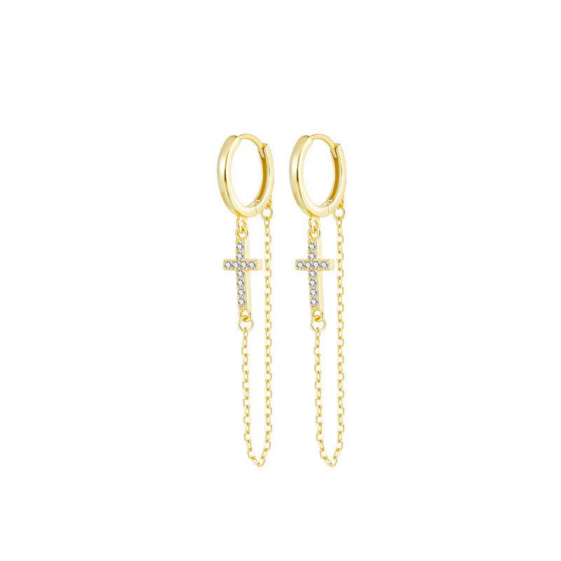 "Jesufira" - 925 Sterling Silber Hängeohrringe mit CZ-Kreuz und eleganten Tasseln, vergoldet